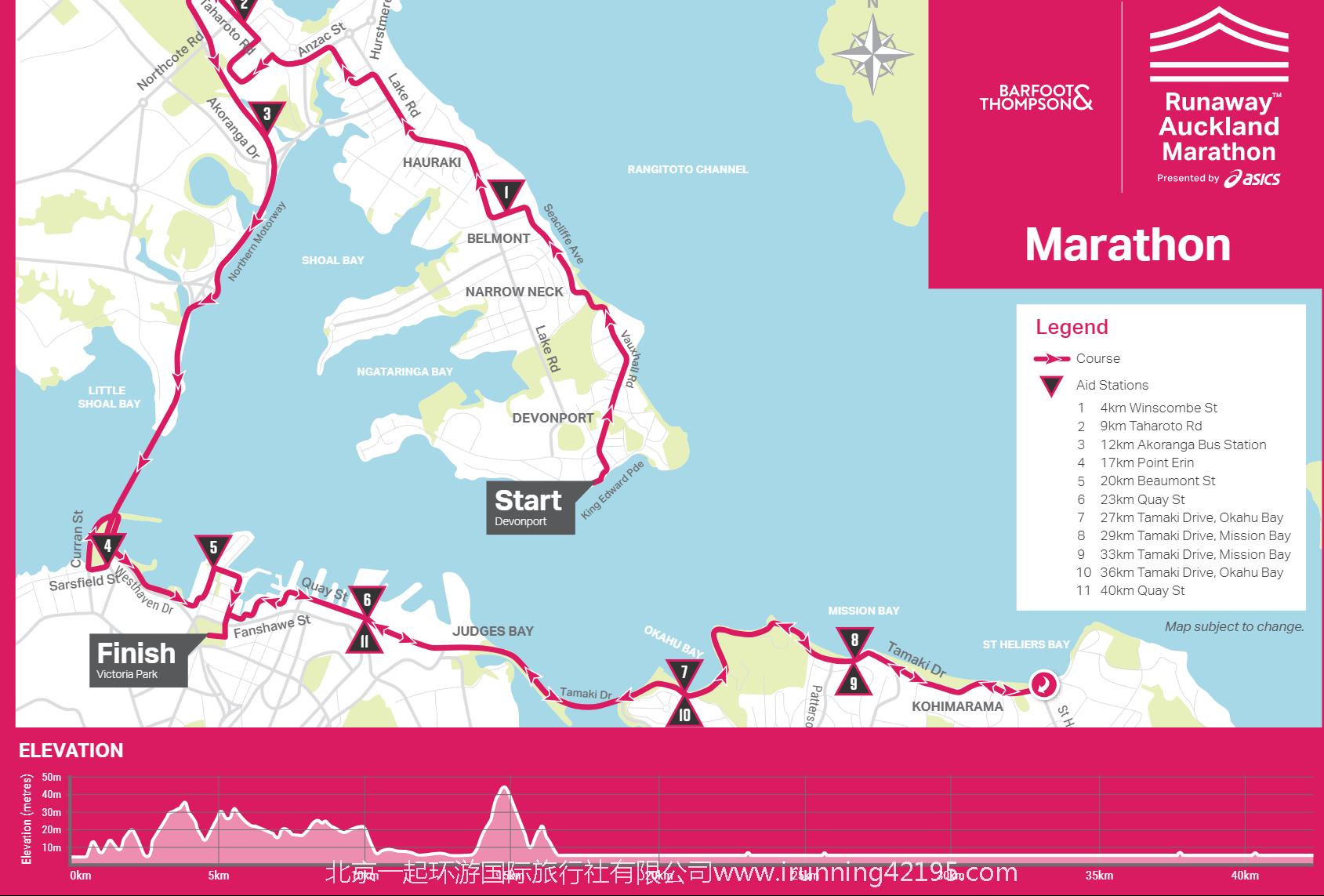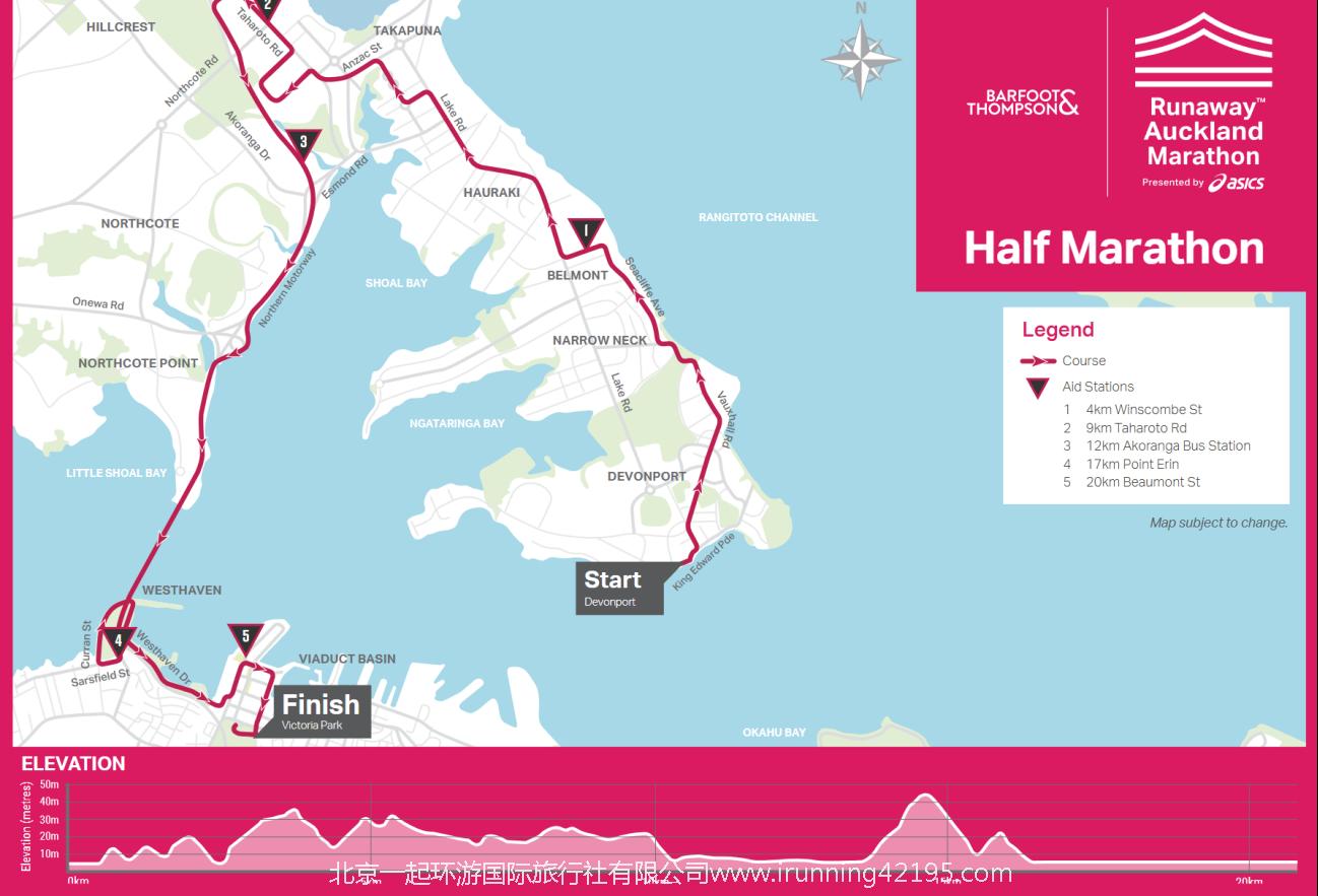 比赛终点:所有项目均为奥克兰范肖街维多利亚公园(Victoria Park, Fanshawe Street, Auckland.)